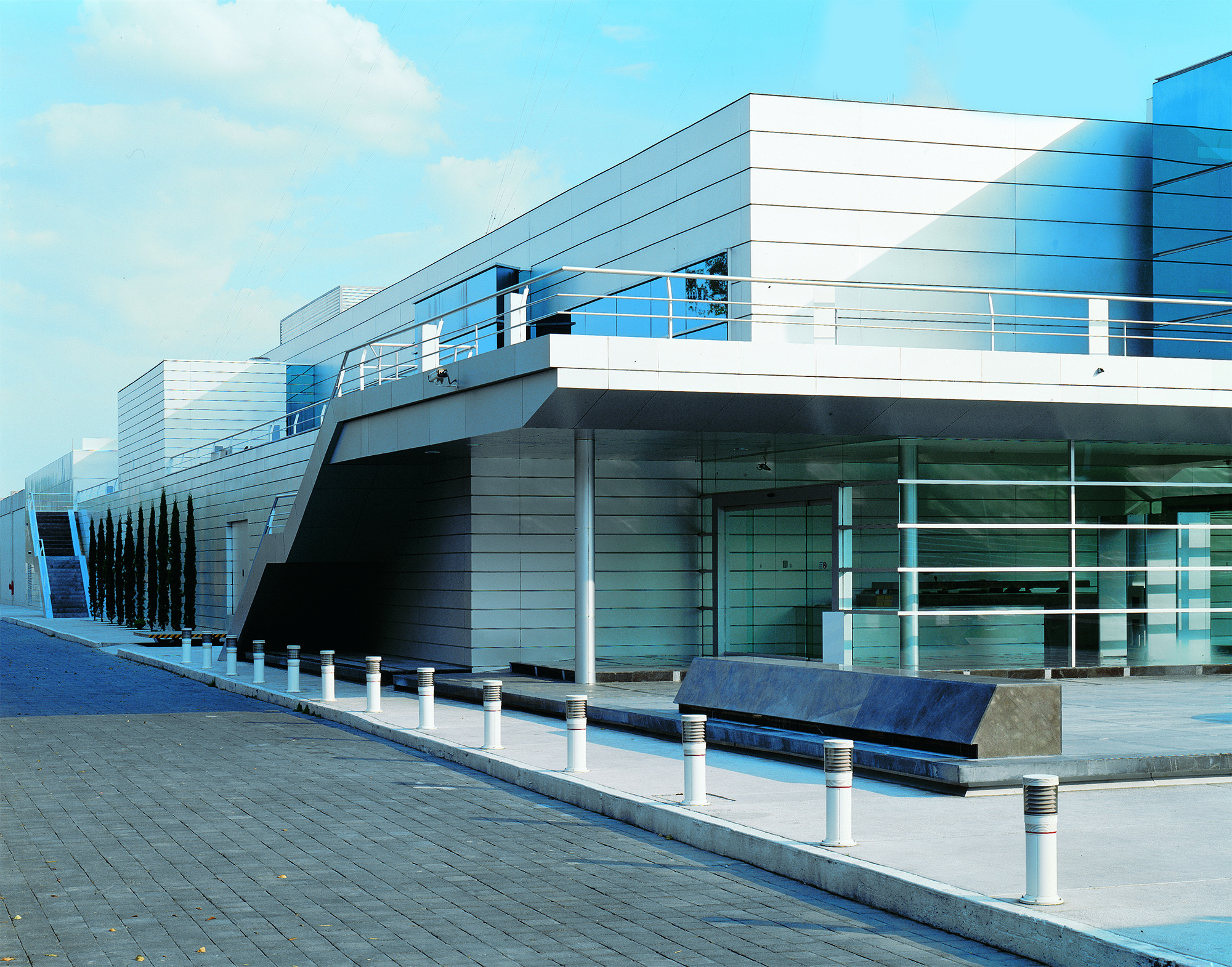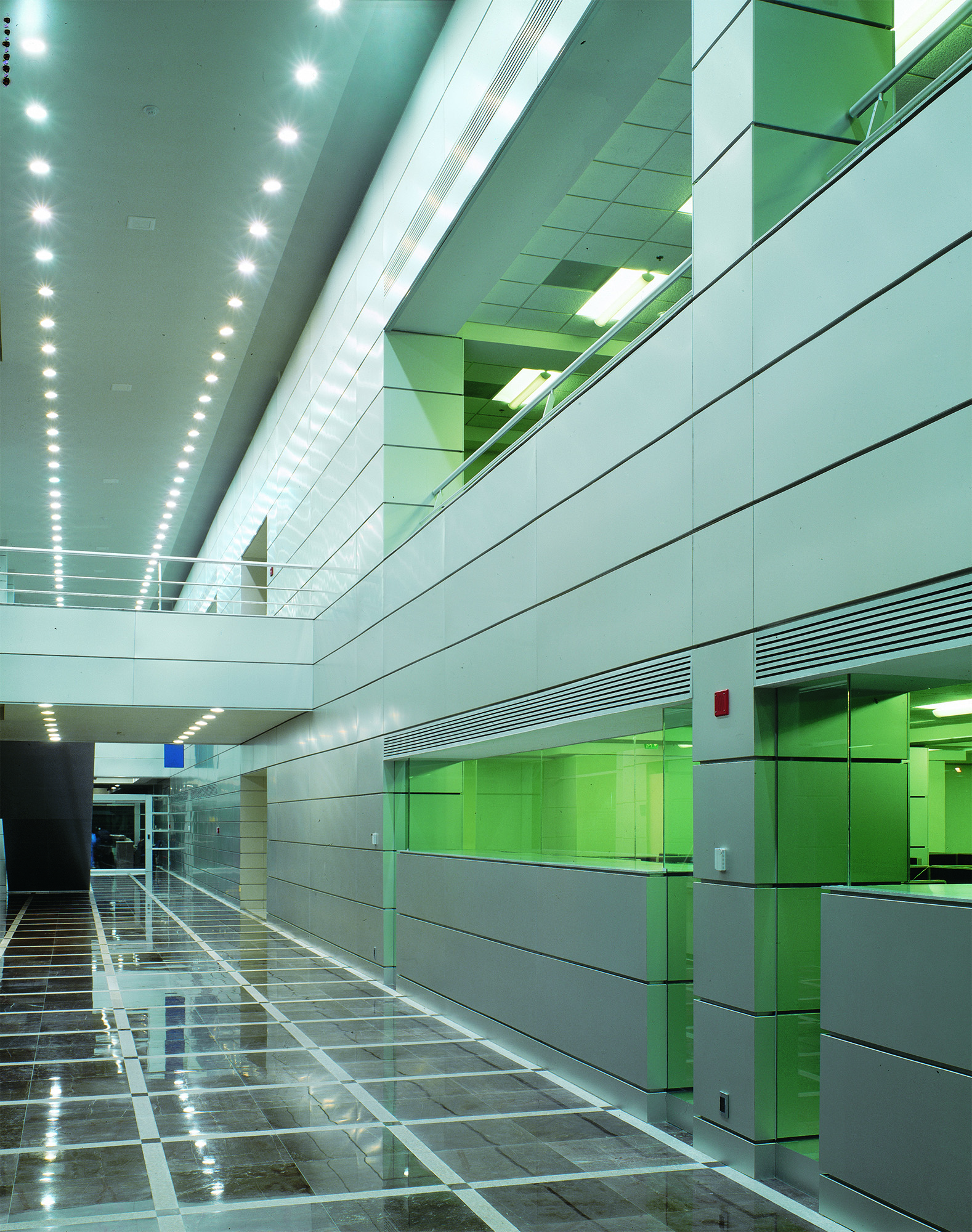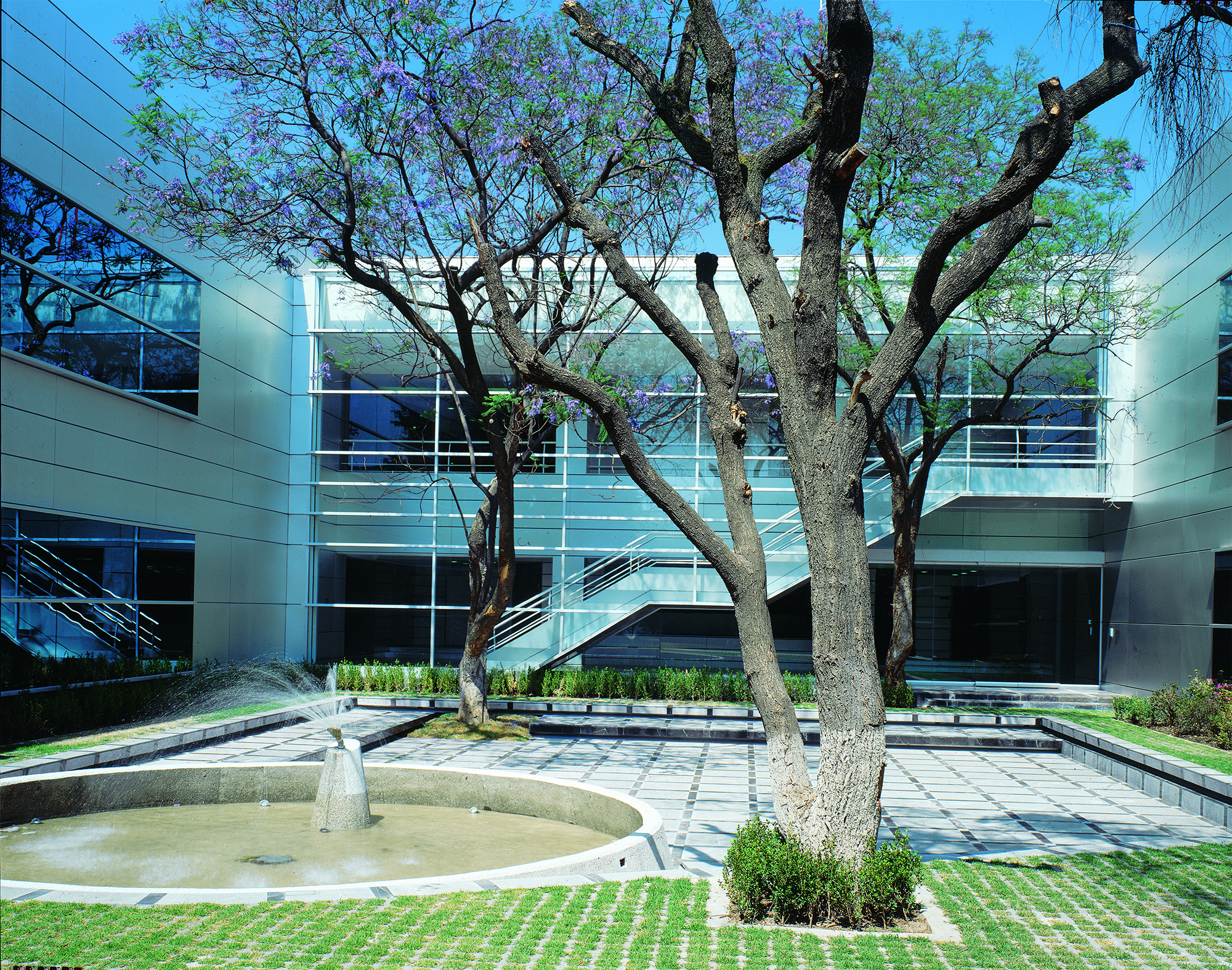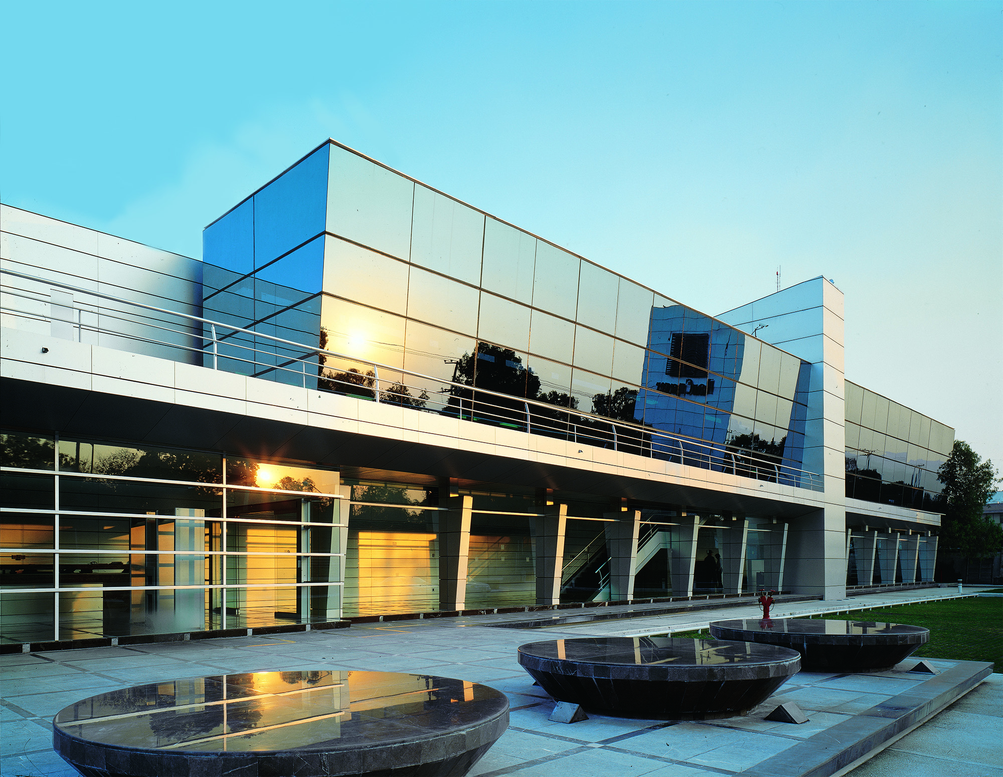El Centro de Cómputo Tlalpan plantea una nueva tipología al romper con el modelo tipo búnker y permitir el recorrido seguro por áreas críticas mediante un pasillo perimetral acristalado, con vocación didáctica y alto contenido tecnológico. El proyecto reutiliza la estructura original de concreto, reforzada y ampliada, como base para una nueva organización espacial a la que se integran volúmenes de cristal y panelería de aluminio. Conectado por un eje principal de 195 metros de longitud y 4 metros de ancho, los espacios se distribuyen en dos niveles en torno a dos vestíbulos, incorporando un patio interior que aporta luz y forma. Totalmente automatizado, el edificio integra sistemas de control avanzados y cumple con estándares internacionales. Su diseño flexible permite reconfigurar áreas y funciones sin comprometer la operación de servicios de banca sistematizada a nivel multinacional.