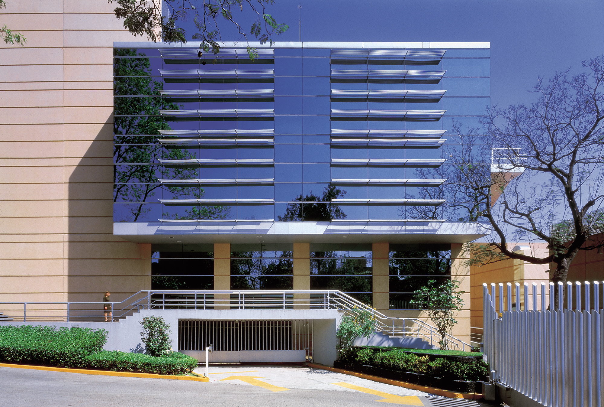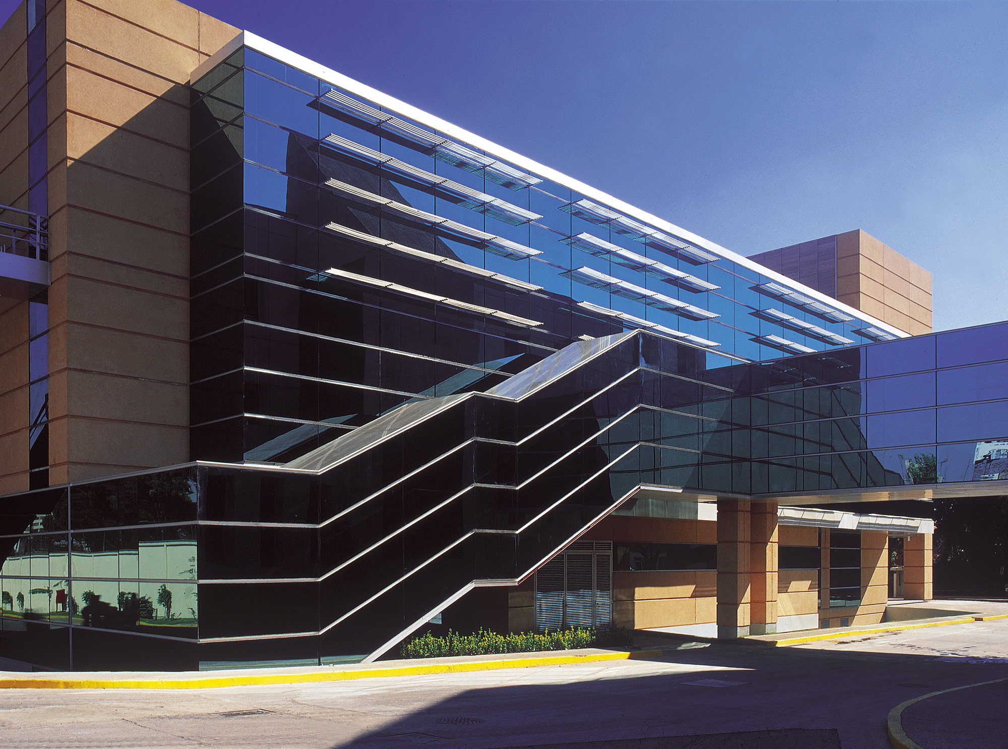 El Corporativo BMS, ubicado al sur de la Ciudad de México, alberga las oficinas generales y la planta de producción de Bristol Myers Squibb. Situado entre Av. Revolución y Periférico, el nuevo complejo surge ante la necesidad de renovar el antiguo edificio de los años cincuenta, ya obsoleto en espacio e instalaciones. La propuesta se organiza a partir de una escuadra de bloques definida por la esquina de Antonio Caso y Av. Revolución. El conjunto se estratifica en distintos niveles: sótano con estacionamiento y cuartos de máquinas; planta pública con atrio, comedor y auditorio; dos niveles de oficinas en bloques independientes, y puentes interiores que refuerzan la conexión visual del vestíbulo.