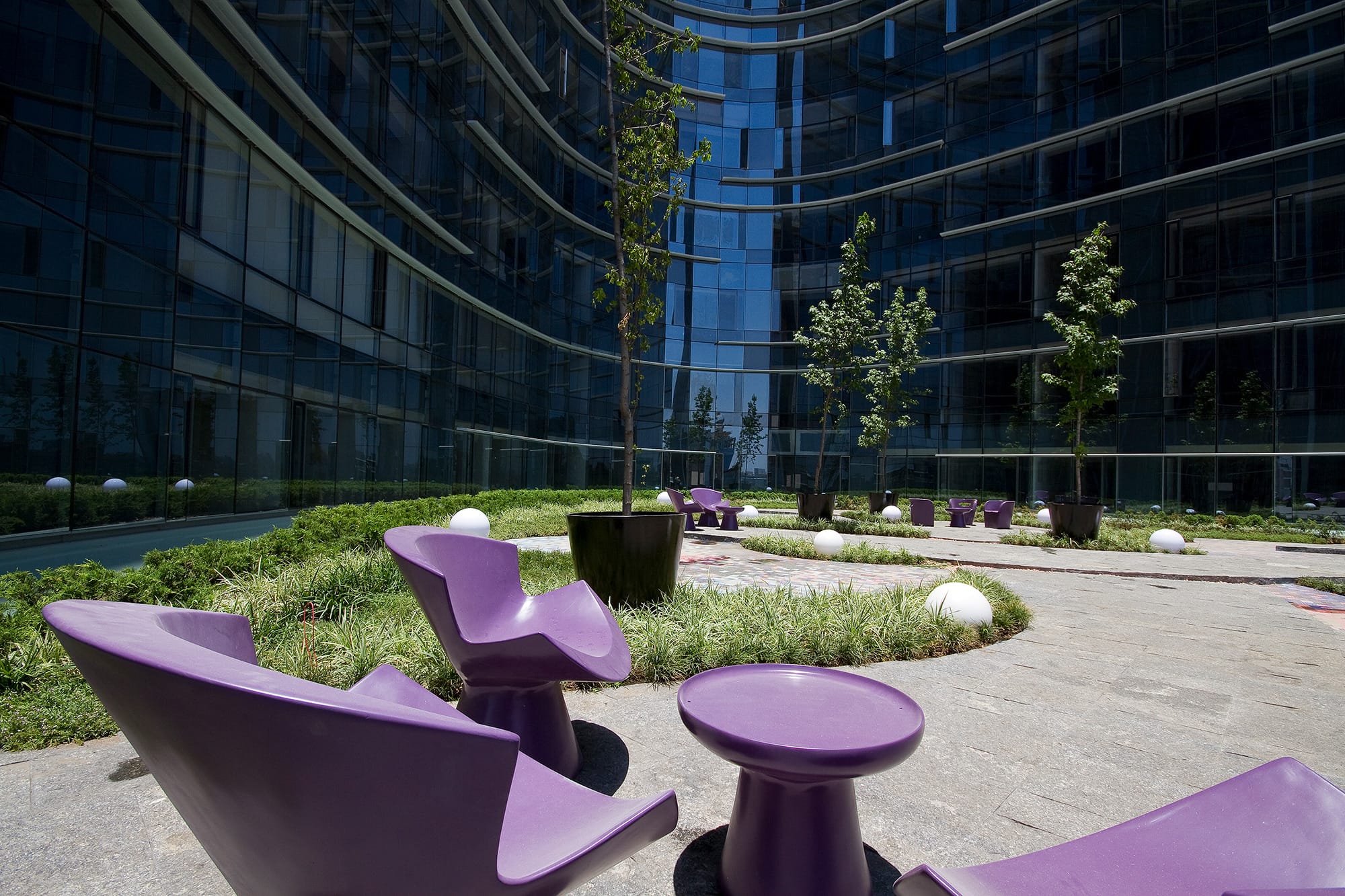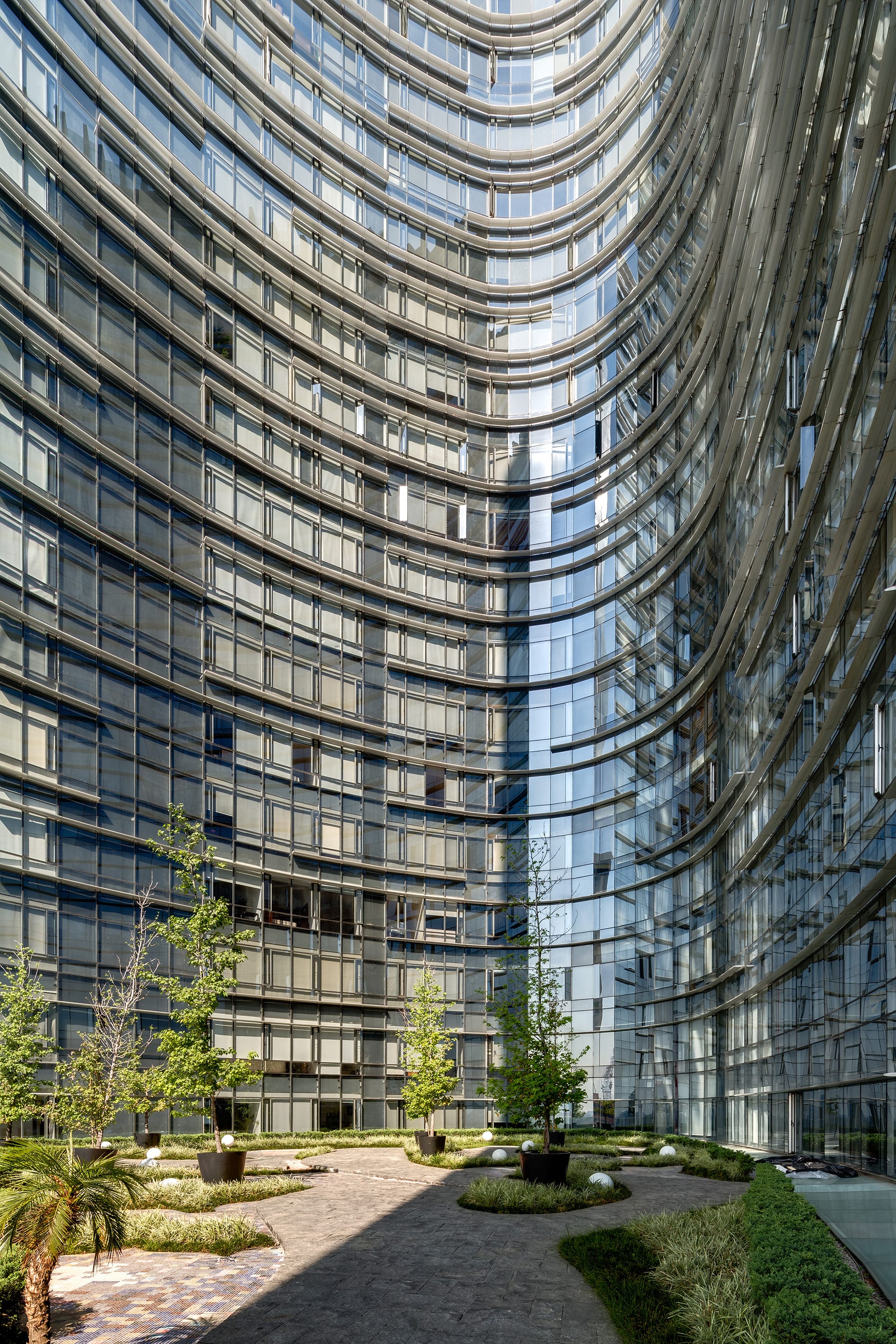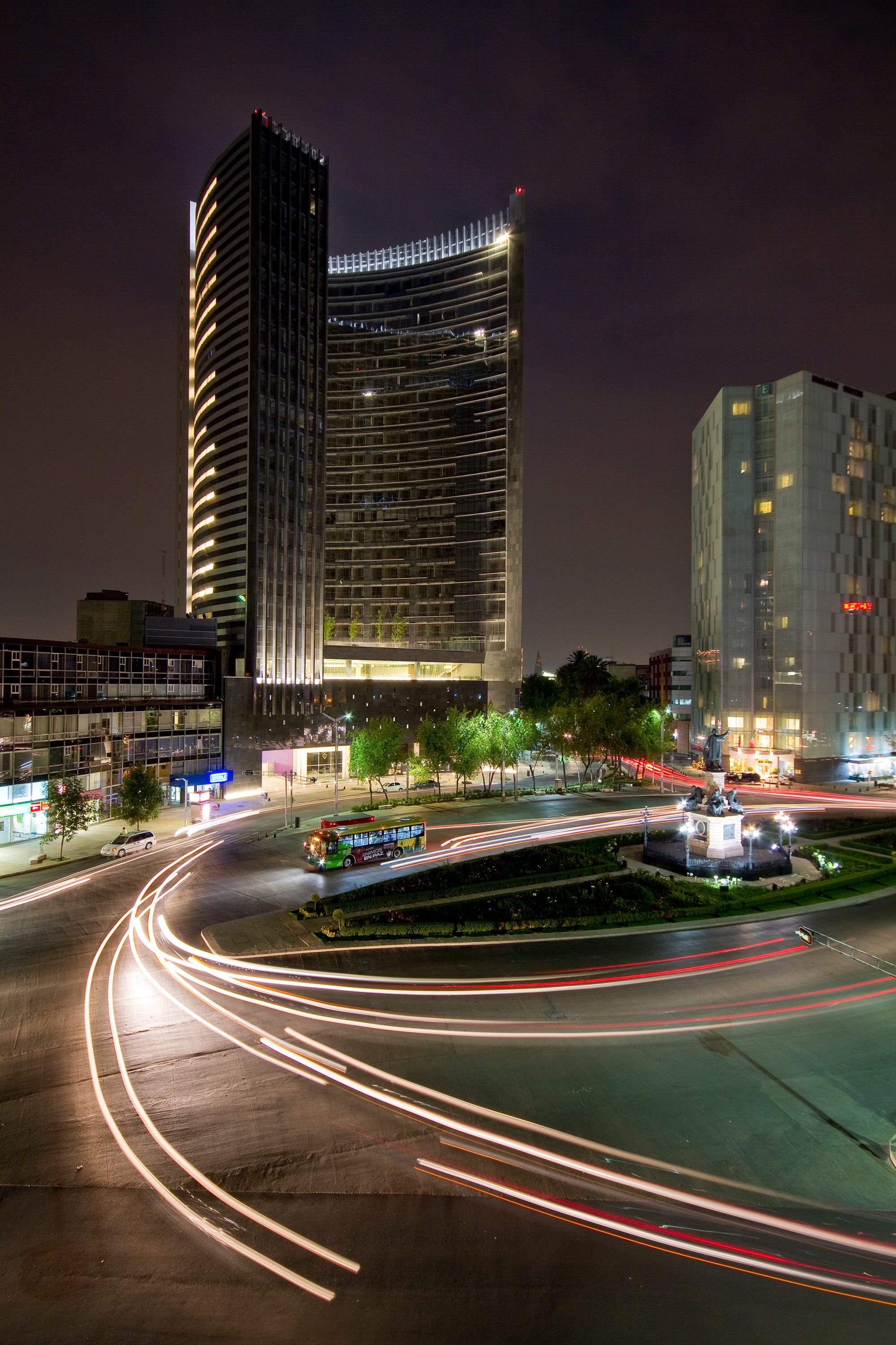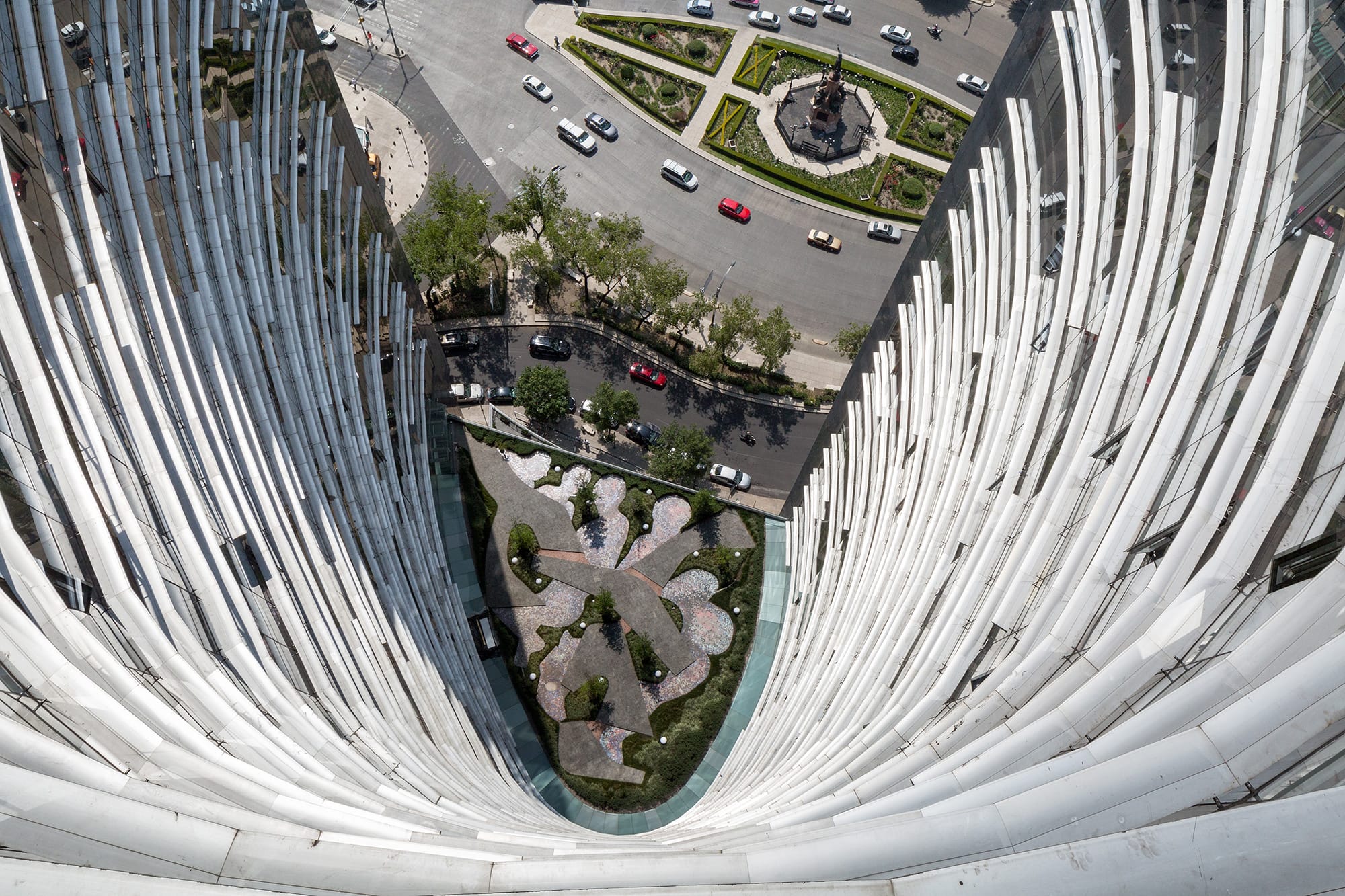 Plaza Residences es un edificio icónico que aporta carácter escultórico al paisaje de Paseo de la Reforma. Su forma de boomerang, con fachada cóncava de cristal, enmarca la glorieta de Colón y garantiza vistas privilegiadas desde todos los departamentos. Se eleva sobre un basamento pétreo que otorga solidez a los niveles inferiores, donde se ubican áreas comunes, comercio y servicios. La volumetría superior se presenta como una cortina de cristal con parteluces de aluminio dispuestos aleatoriamente, generando un juego dinámico de luz y sombra. La fachada convexa incorpora bandas horizontales que albergan circulaciones y se convierten en miradores. Las esquinas verticales rematan en una caja de luz nocturna con columnatas y cristal, que define la silueta del edificio. Un mural tipo “pisal” en la plaza refuerza la conexión con el espacio urbano y funciona como transición visual. Plaza Residences se consolida como un nuevo referente arquitectónico sobre una de las avenidas más emblemáticas de la Ciudad de México.