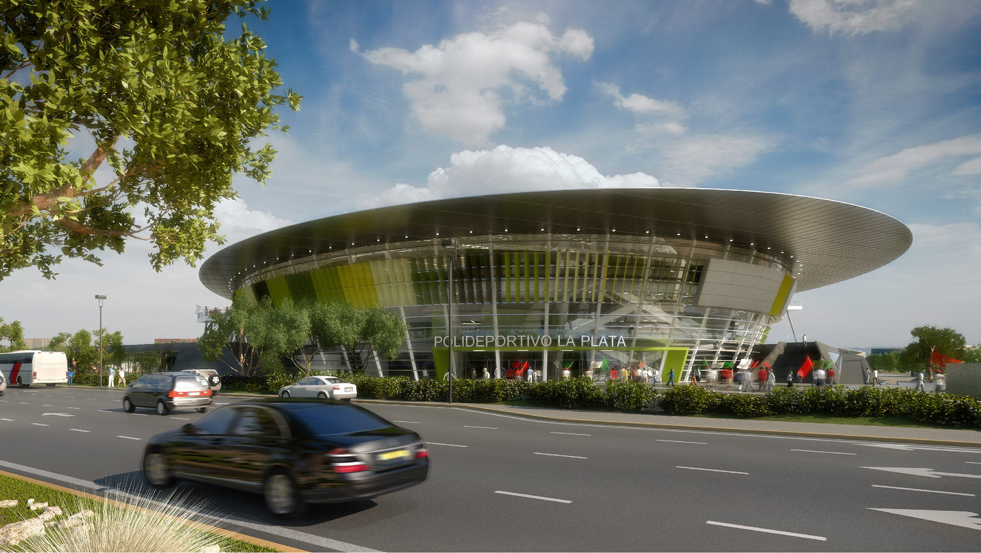 El Polideportivo La Plata se localiza sobre el Boulevard Felipe Ángeles, en Pachuca, Hidalgo, frente al Parque Cultural David Ben Gurión. En un terreno de 8 hectáreas, funciona como núcleo de un complejo deportivo con pista de carreras, canchas, auditorio, alberca y estacionamientos. La arena, de 25,000 m², es un espacio multifuncional que alberga disciplinas como basquetbol, box o tenis, y eventos con capacidad de 6,000 a 8,000 espectadores. Su forma elíptica evoca un estadio y se integra al terreno mediante un basamento que genera una plaza urbana abierta hacia la avenida y el parque.