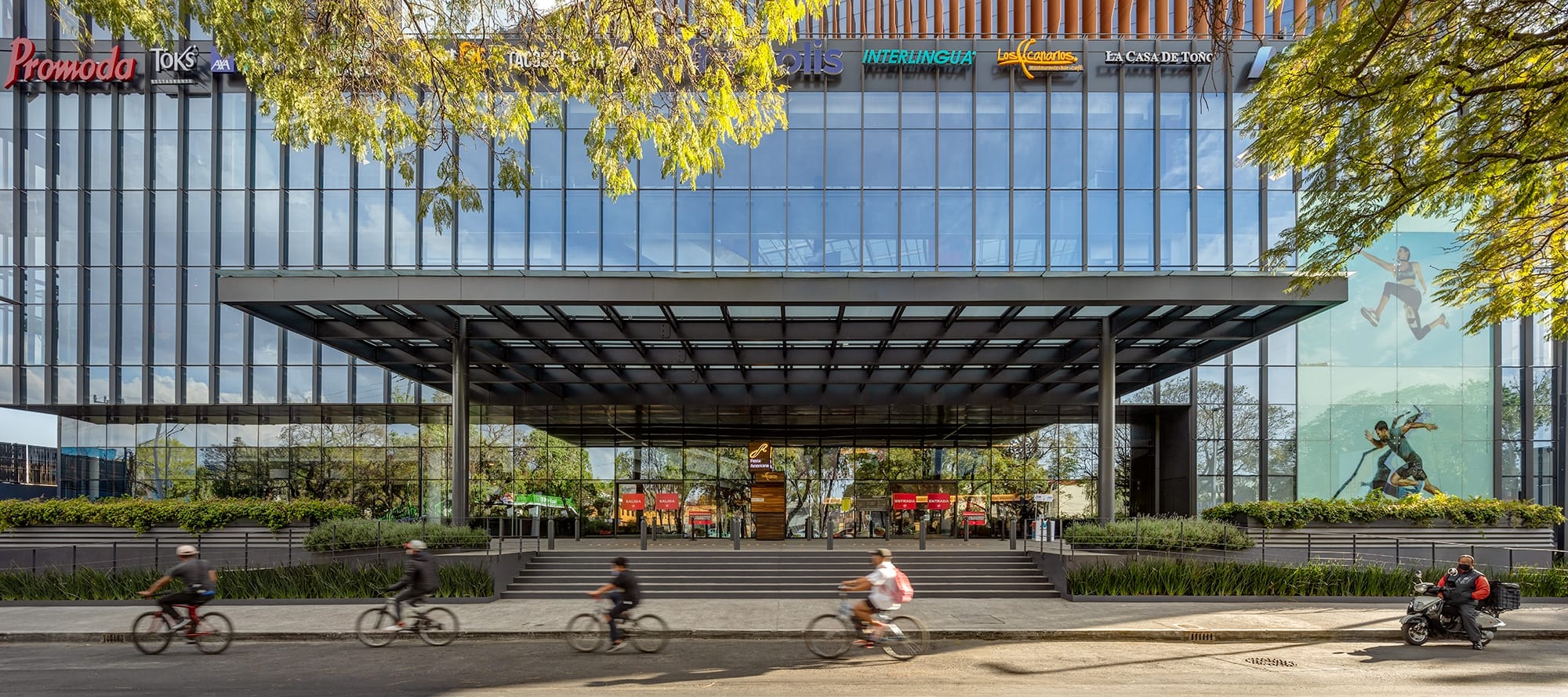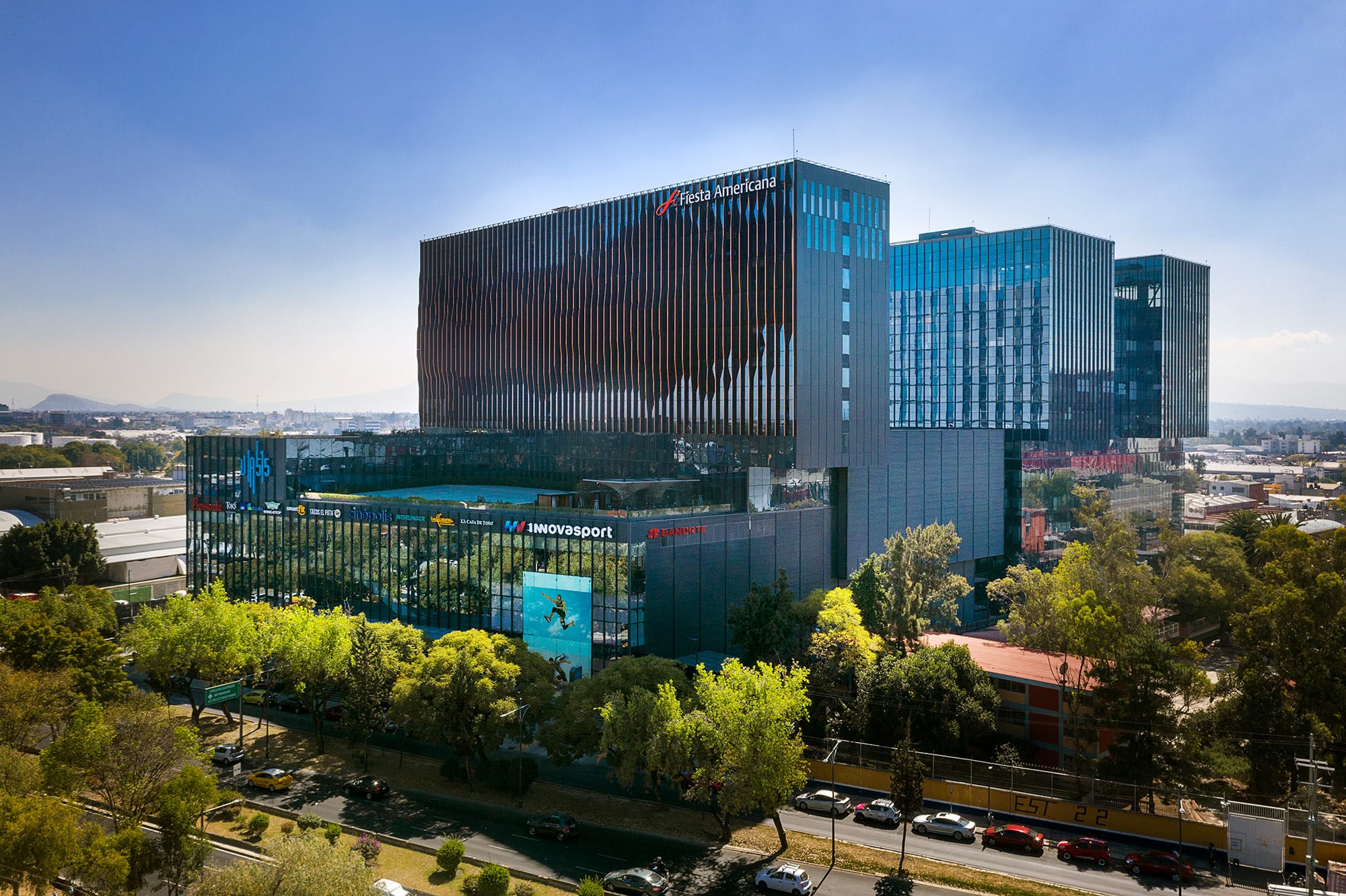 Vía 515 es un conjunto de usos mixtos de 106,000 m² ubicado al oriente de la Ciudad de México, entre el aeropuerto y el centro histórico. Integra tres edificios: centro comercial, hotel y oficinas, adaptados al entorno urbano y al carácter lacustre del terreno. El centro comercial, sobre Viaducto Miguel Alemán, se desarrolla en forma de “U” en torno a un patio central con cubierta traslúcida y fachada de vidrio que favorece la entrada de luz natural. Sobre este volumen se eleva un hotel de ocho niveles con 245 habitaciones, cuya fachada de paneles de aluminio cobrizo reinterpreta el eje geovolcánico del Valle de México, filtrando luz y ruido. Al frente opuesto, sobre la calle Añil, un edificio de oficinas de 12 niveles con patio y terrazas optimiza iluminación natural. Ambos volúmenes se articulan mediante calles interiores que forman un circuito vehicular y peatonal, conectando accesos y estacionamientos subterráneos. La cimentación, con pilas y una losa de 2 metros, garantiza estabilidad sobre suelo lacustre e incluyó uno de los colados masivos más grandes del país. Vía 515 se consolida como un ícono arquitectónico y motor de desarrollo en la zona oriente.